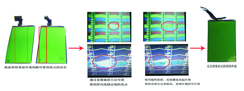 通過AOI自動光學檢測(制程中用)或人工檢測(末段用),報出短路缺陷坐標或做出缺陷不良分類,然后利用激光修補,達到良好品質。